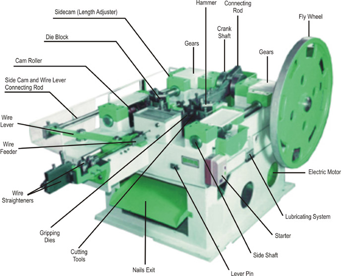 NAIL MAKING MACHINE is simple and sturdy in design, high output easy to operate and long service life. All tools are easily accessible and can be quickly exchanged. Even an unskilled worker is able to easily operate this simple and high efficient machine.